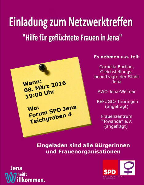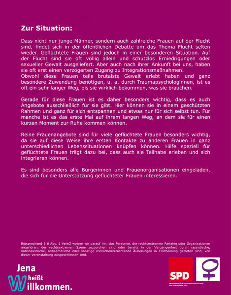 "Hilfe für geflüchtete Frauen" - Veranstaltungshinweis der ASF Jena/ Saale-Holzland-Kreis