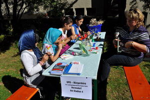 Vergangene Woche fand zum 20-jährigen Jubiläum der Landesaufnahmestelle Thüringen in Eisenberg-Saasa ein Tag der offenen Tür statt. Paralles dazu wurden die Schulen der Umgebung zum 4. Interkulturellen Mal- und Spielfest eingeladen. Musik, Kultur und viele gute Gespräche gab es zwischen den Gästen und den Bewohnern unterschiedlicher Nationalitäten. Unser Bürgerbüro beteiligte sich an den zahlreichen Angeboten mit einem Bastelstand.